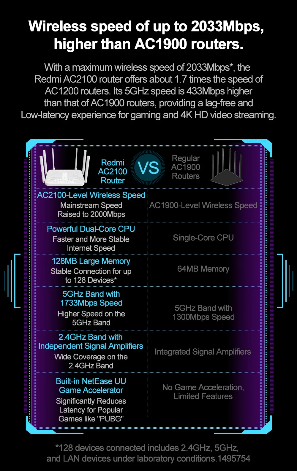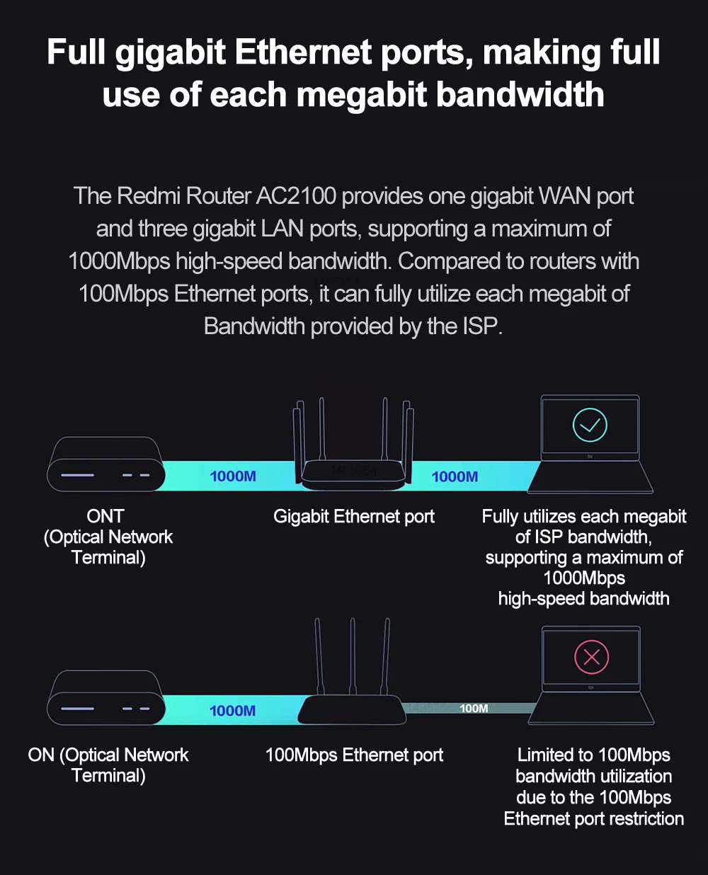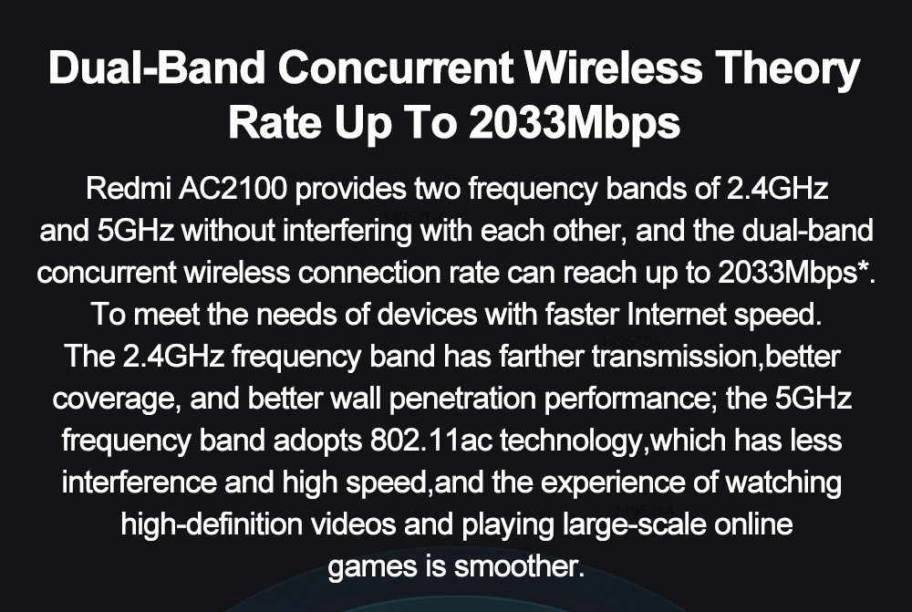 Xiaomi MI Redmi Router AC2100 Dualcore Cpu Potente 5G Dual-band Gigabit Port Mel