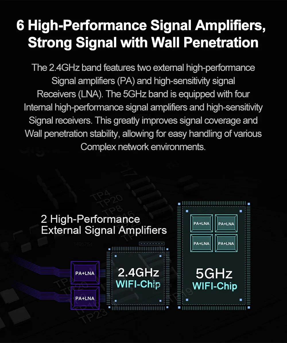 Firmware Chinesa, 6 antenas wifi6 roteador sem fio 802.11ax, bandas duplas 2.4ghz